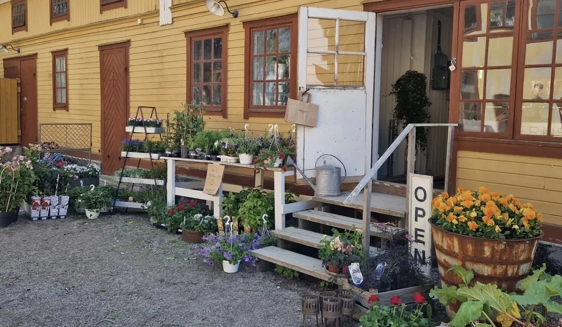 Bakom f.d värdshuset ligger ett charmigt café med en blomsterbutik.